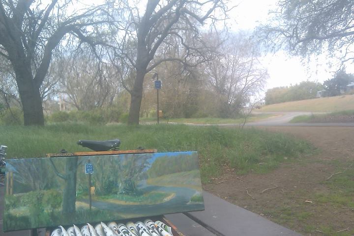 This is a painting of my exit off the American River Bike Path To go over the Guy West bridge in Sacramento.