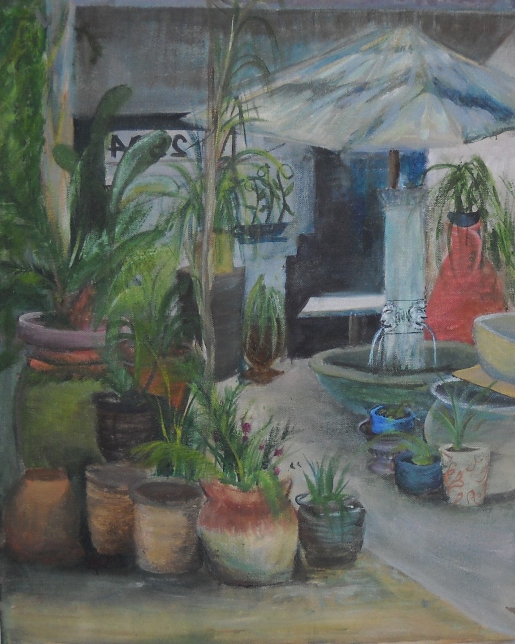it was painted in a garden behind a coffee shop called the coffee garden.