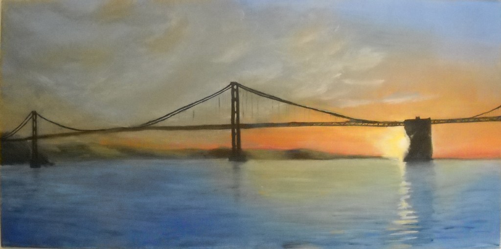 A painting I made using a photo reference. The photo is of the sunrise of my last day of my bicycle trip while I was riding the ferry across the SF bay to Vallejo before riding all day to my brothers house in Sacramento.