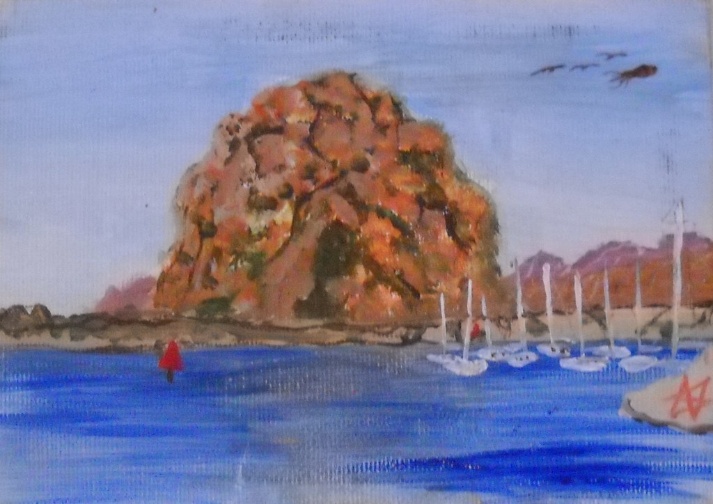 Flying squid over Morro Bay 6″x8″ Acrylic on canvas