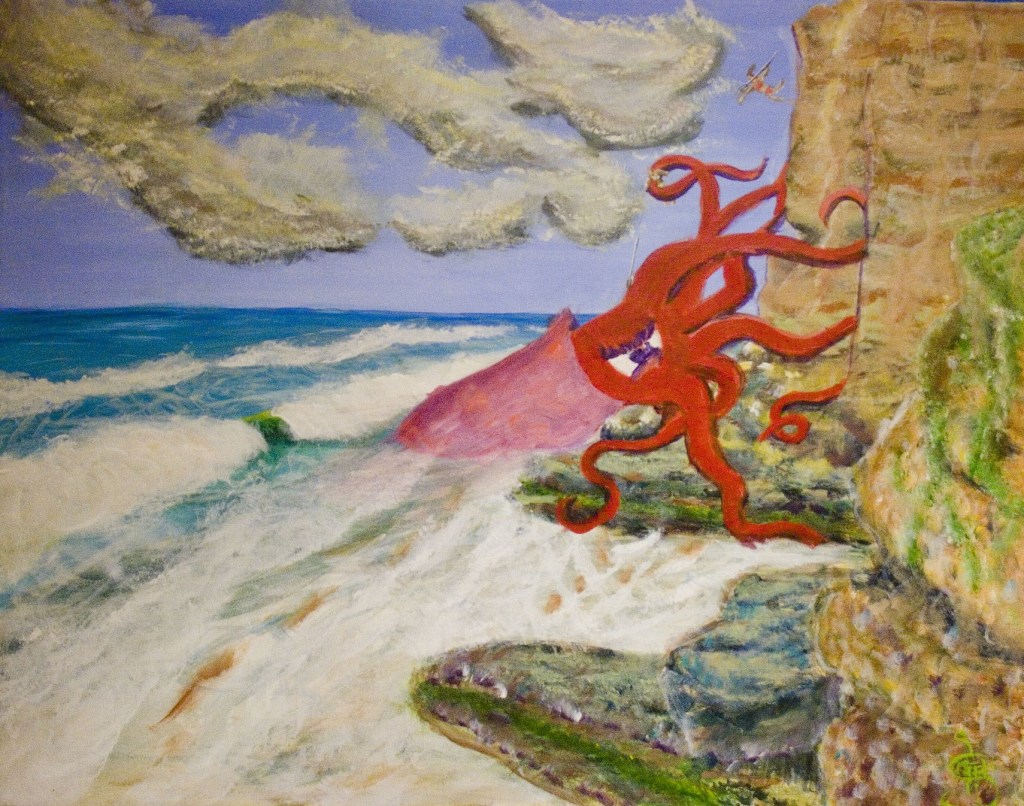 Solana Beach dog beach, except it is squid beach today. Luckily there are some Brave warrior women protecting the coastline.