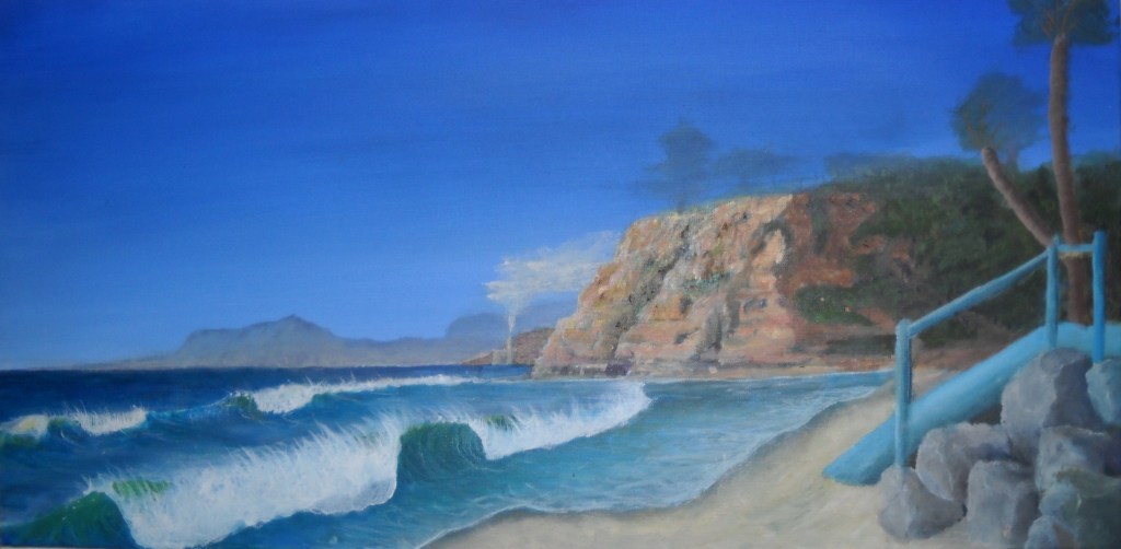 Except there are no dogs Dogless Beach Looking North 15″x30″ Acrylic On Canvas Plein-Air 4/2011