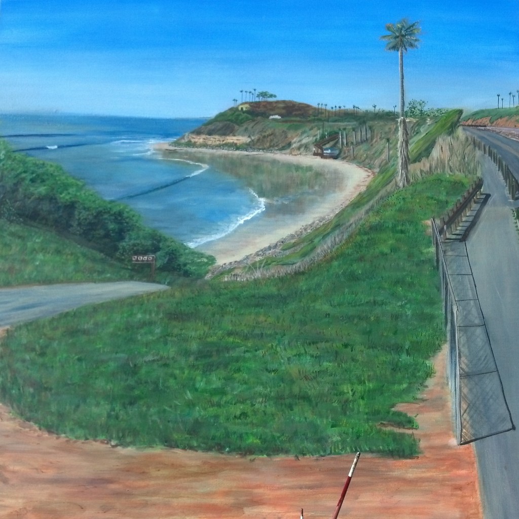 36″x36″ Acrylic on canvas Plein Air 3/2013 I did this painting from Kevin’s favorite painting spot, and now I know why, the composition of this spot is amazing, you get the feeling of an enclosed cove on this little stretch of coastline.