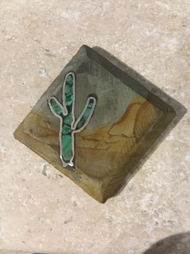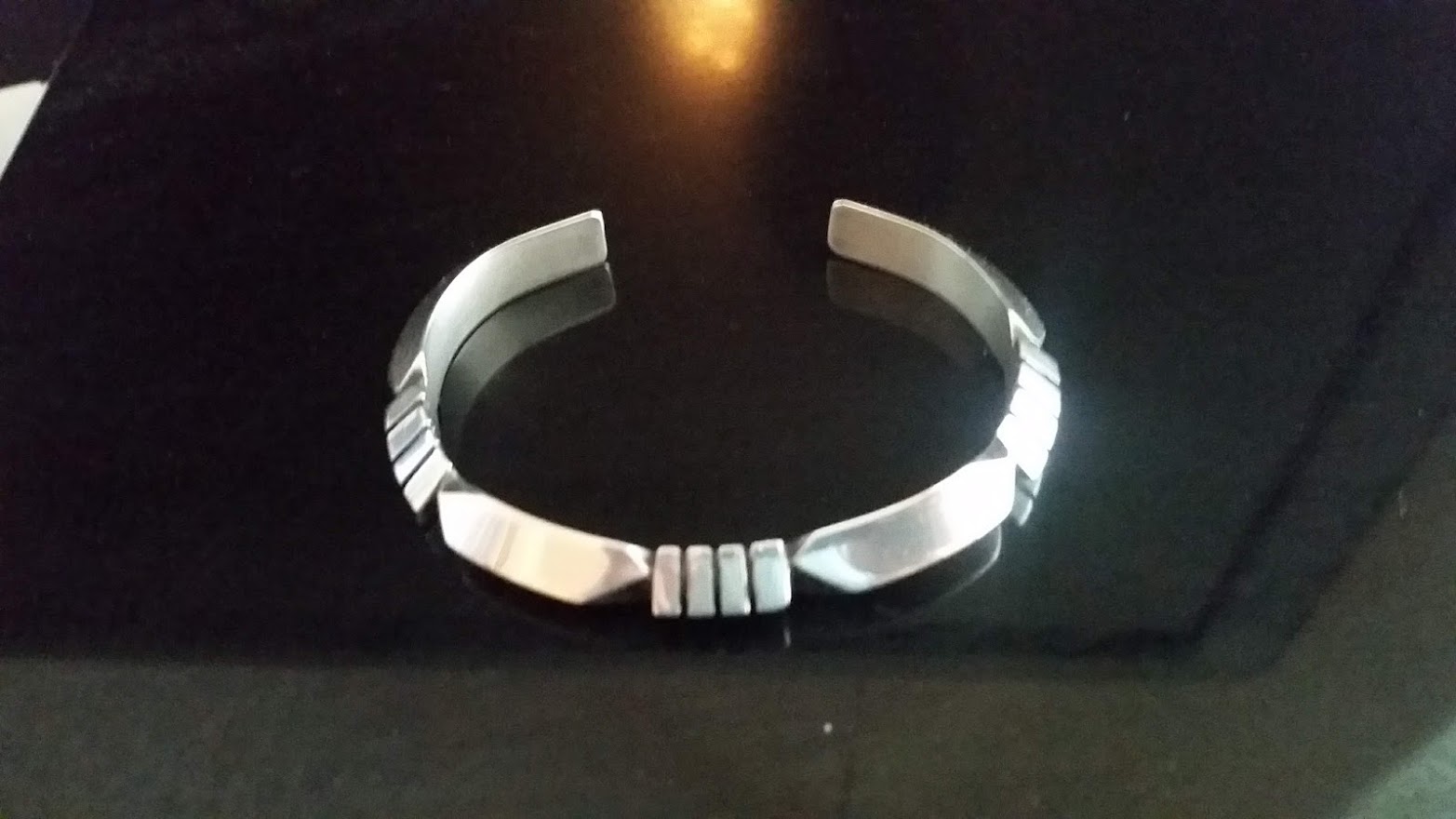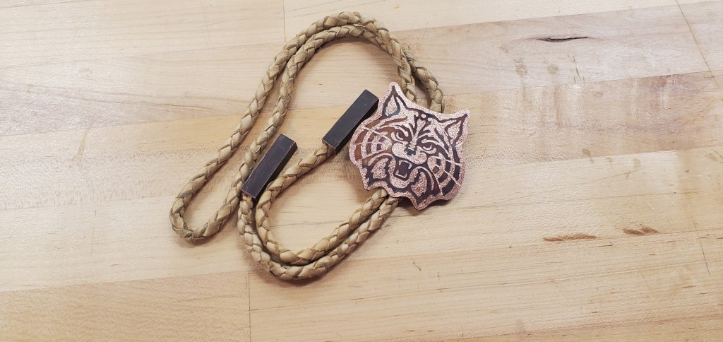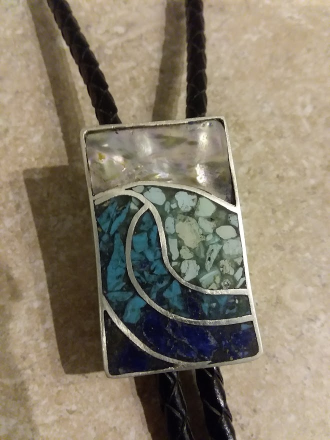 La Paz : Inlaid abalone, Mokumegane, Lapis Lazuli Desert Moonrise: Inlaid Abalone in picture jaspar.Wave brothers: Cast Turquoise and Abalone in silverDesert Climber: Mokumegane, silver and cast turquoise, mokumegane and malachiteDesert Saguaro: Cast Malachite inlaid in silver with picture jaspar pendant.“Replacement stolen bracelet”: Sterling SilverOllin Bolo Silver CATalyst Studios Earrings SilverWildcat Bolo for Associate dean CopperLa Paz Bolo Silver, Mokumegane, Malachite, Abalone, Chemehuevi Bolo for Vice PresidentWildcat Bolo: AluminumGila Bolo for Governor: Copper Mokumegane PendantPicuris Bolo for Governor: SilverRufus Bolo: SilverSACNAS Bolo: SilverWildcat Bolo for President: SilverWildcat Bolo: Silver and Beaded Cord